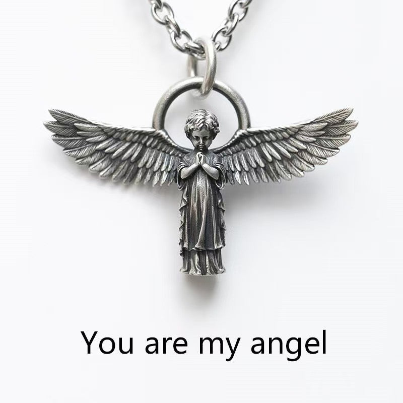 Exquisite guardian angel pendant necklace that perfectly combines divine elegance with gothic style.